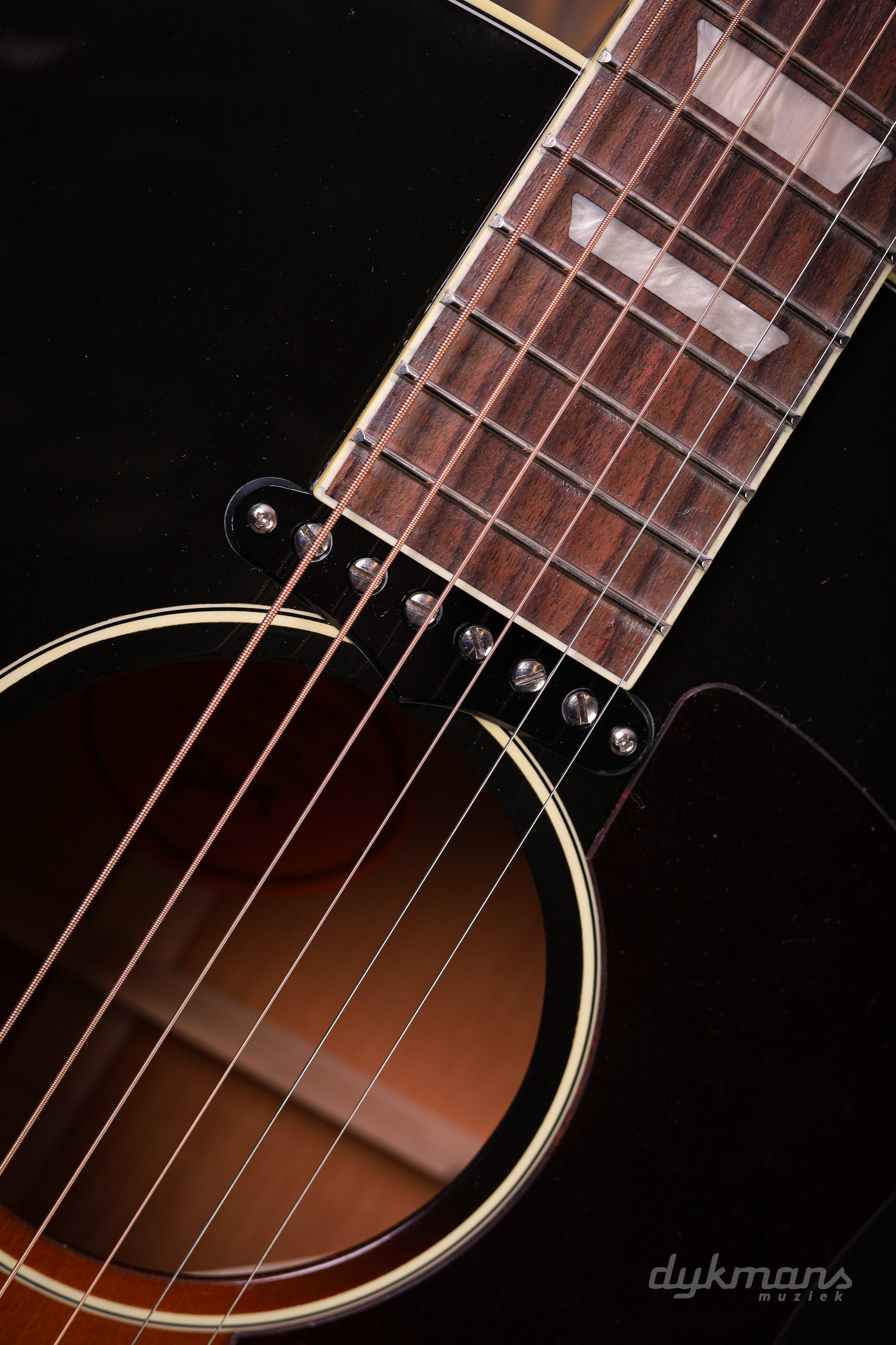 Net als zijn historische voorgangers is de J-160E Original uiteraard uitgerust met een pickup. In plaats van de traditionele P-90 is gekozen voor een P-90 DC pickup: dezelfde herkenbare P-90 klank en dynamiek, maar dan zonder brom. De pickup is aangesloten op bovenblad-gemonteerde volume- en toonregelingen met stijlvolle 60s gold Top Hat knoppen met zilveren reflectors, en een zij-gemonteerde output jack. Ideaal voor ruisvrij spelen op het podium of in de studio.
