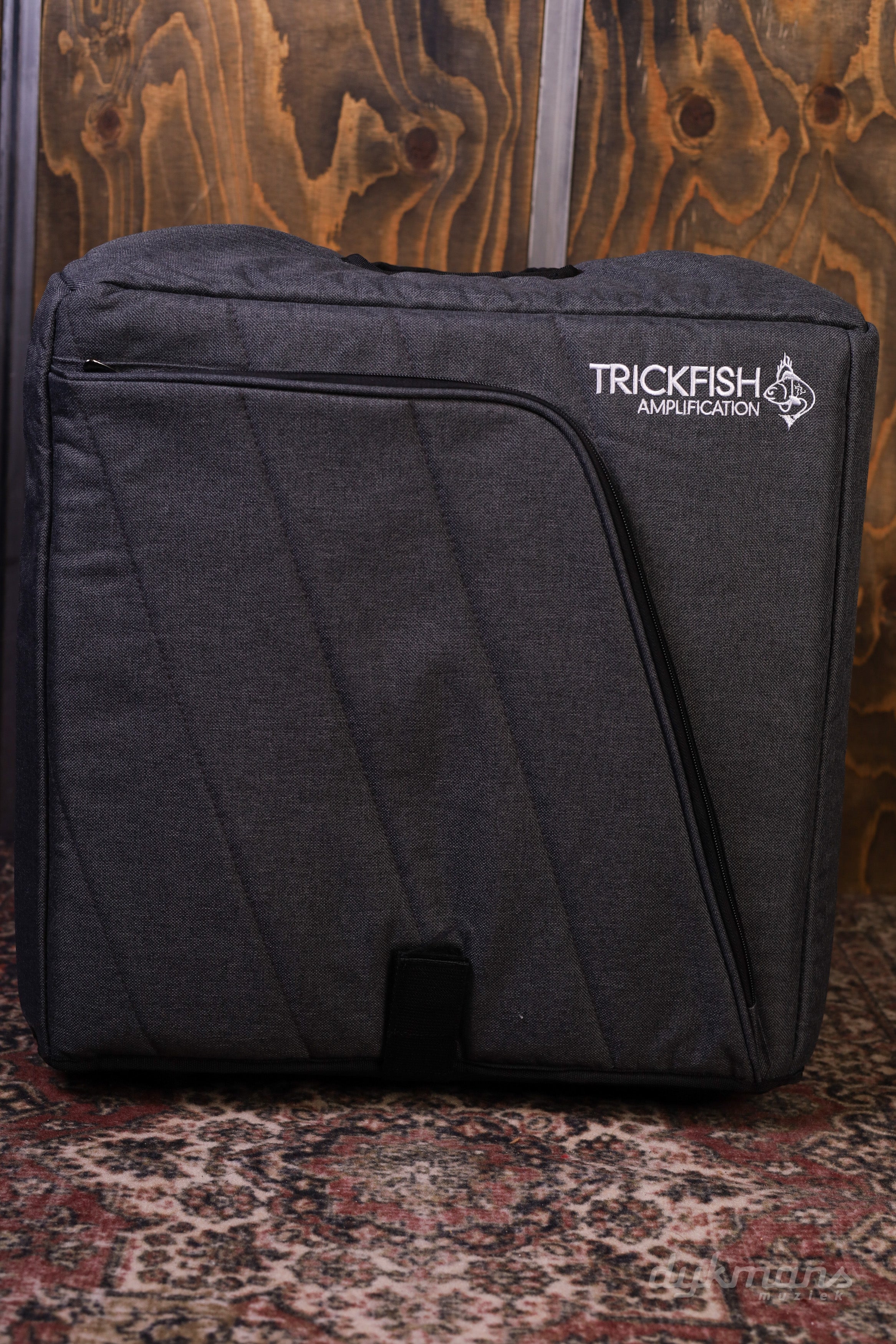 They have thick foam padding to protect the cabinet, a durable, tear-resistant outer cover, and a plush interior, and a strap to hold it in place. The outer pocket is spacious enough for cables, sheet music, or even a few pedals. Also covered with gray diagonal stitched fabric and white embroidered Trickfish logo, it's the perfect match for the amp bag!