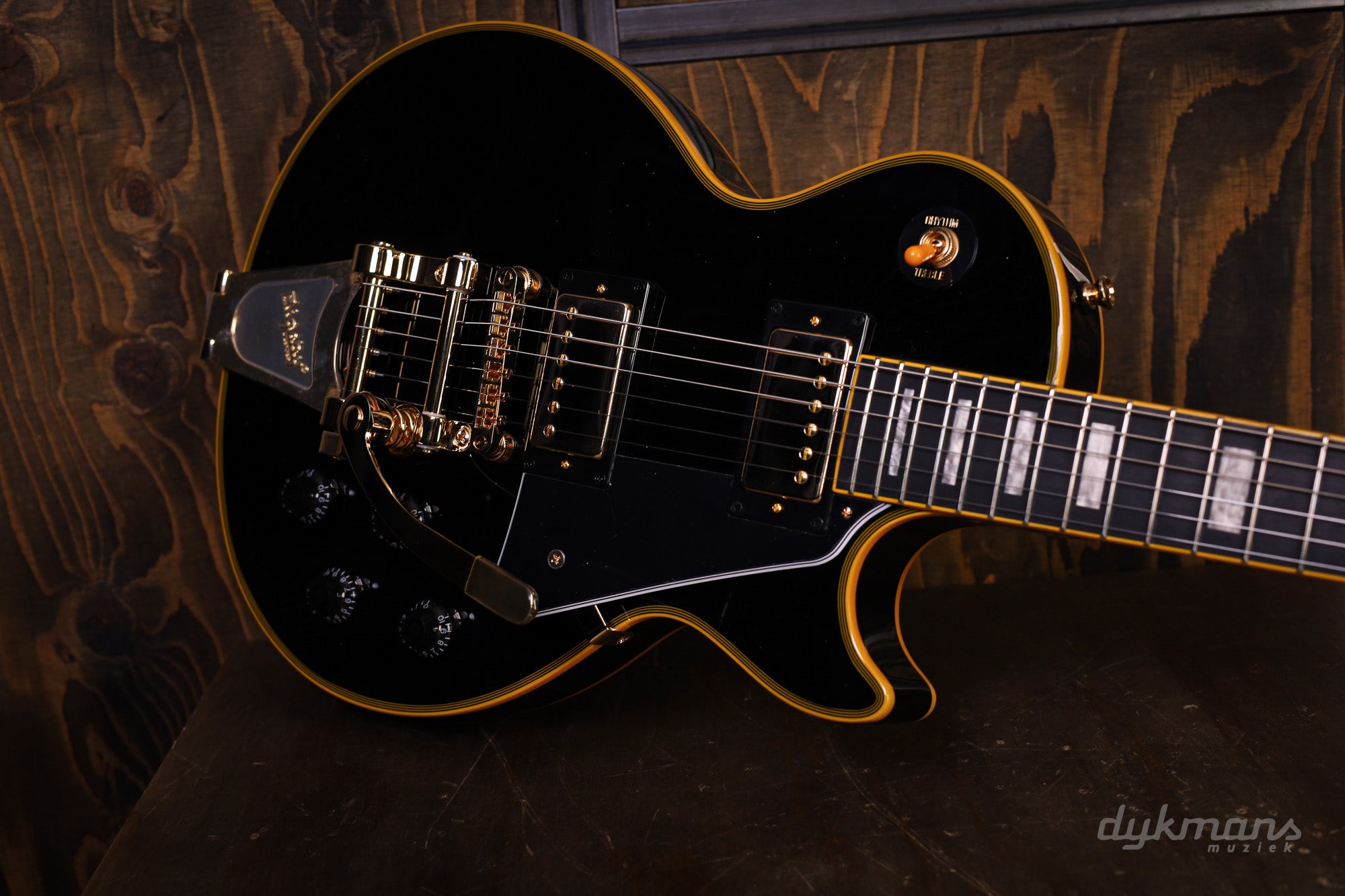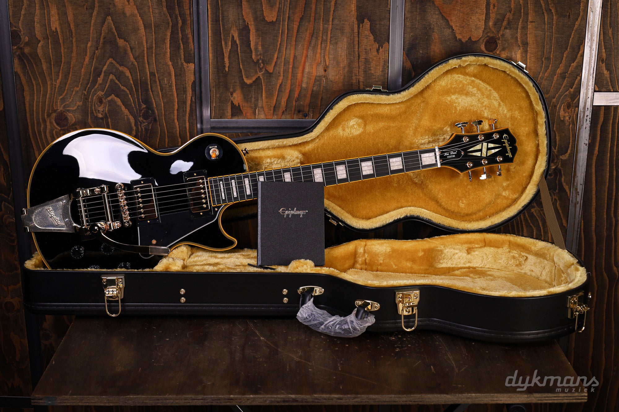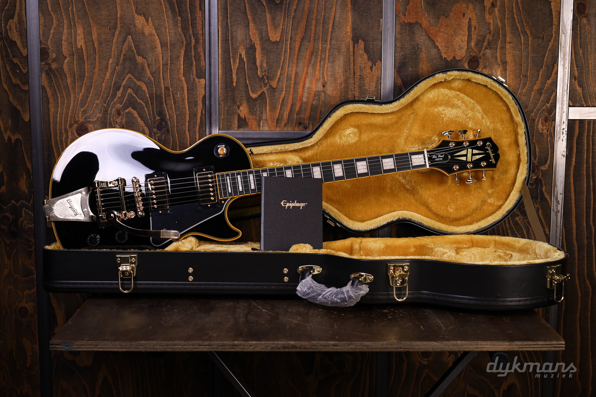 The sound is provided by two Epiphone ProBucker™ Custom pickups, each with its own volume and tone controls and high-quality CTS® potentiometers. This results in a versatile and dynamic tone, perfectly suited to the character of a Les Paul Custom. The hardware is, of course, finished in gold, including the LockTone™ Tune-O-Matic™ bridge.