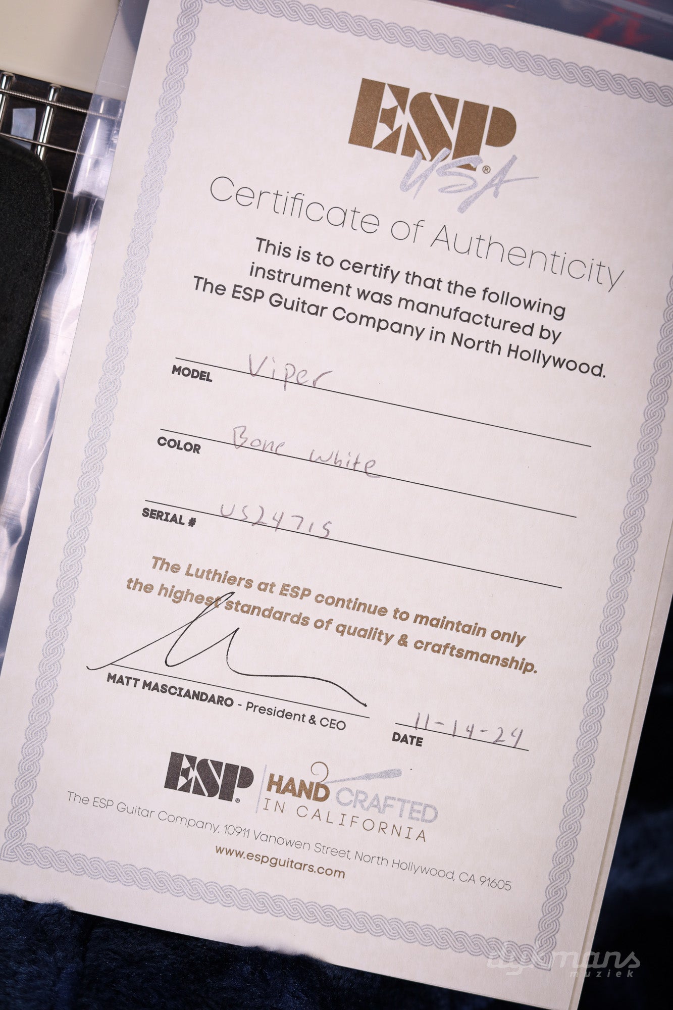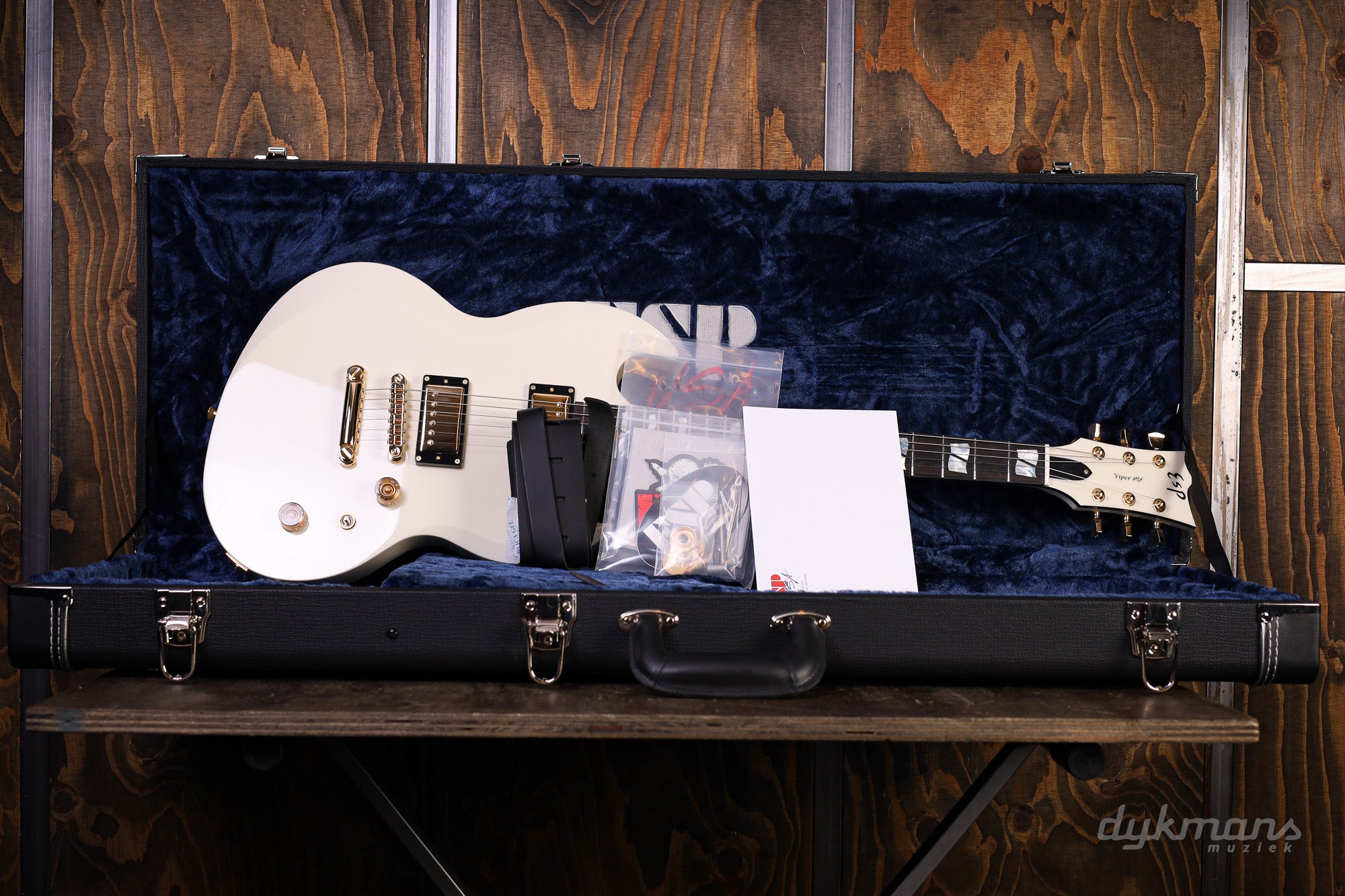 Kortom: een ESP USA Viper die vakmanschap, veelzijdigheid en pure speelvreugde combineert – in een strak, Bone White jasje dat direct in het oog springt.