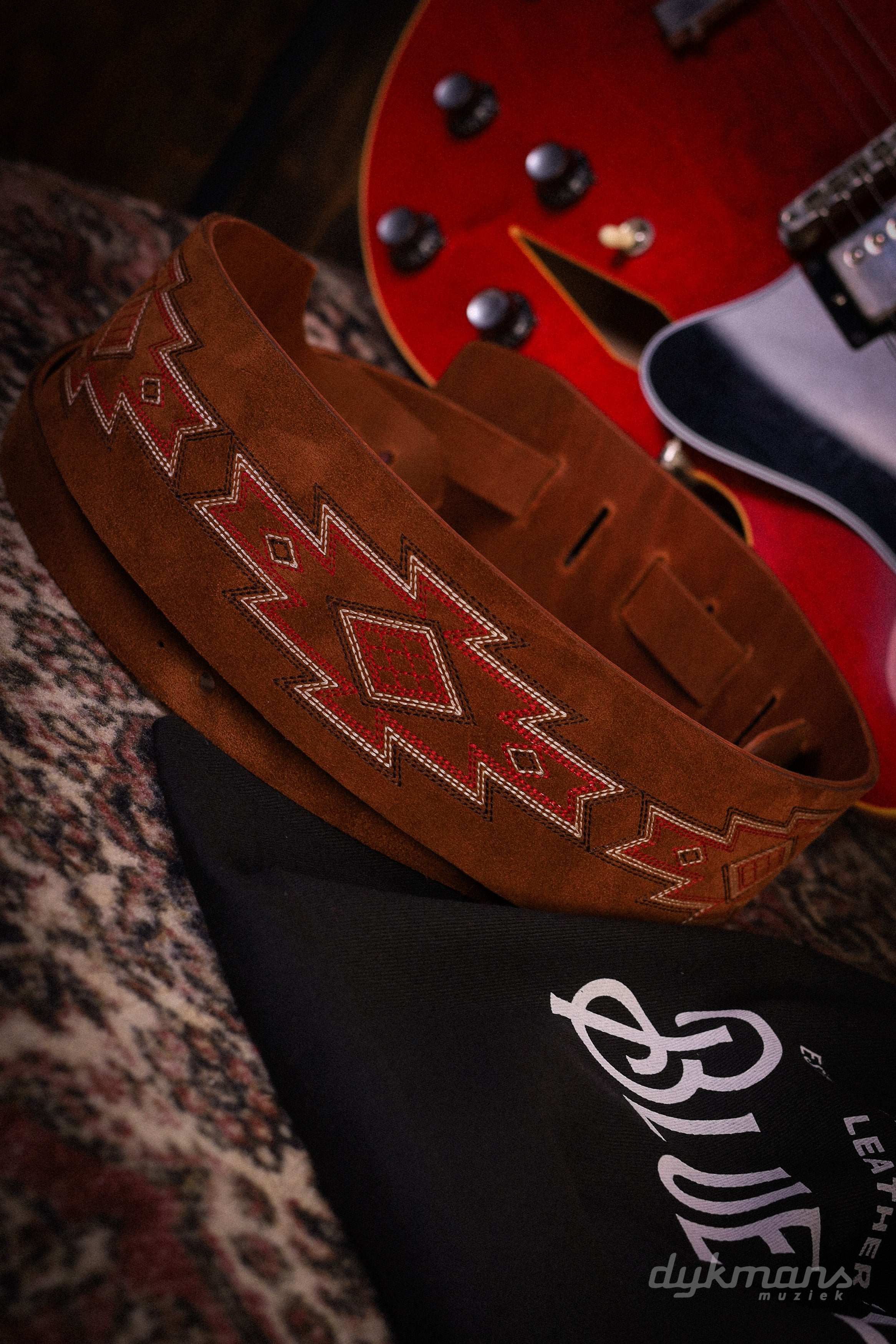 De Blue Bell Totem Strap Amber is een opvallende gitaarband met een uitgesproken vintage uitstraling en hoogwaardige afwerking. Het karakteristieke totem-patroon geeft deze strap een unieke, bijna handgemaakte look die perfect past bij gitaristen die hun instrument ook visueel willen laten spreken.